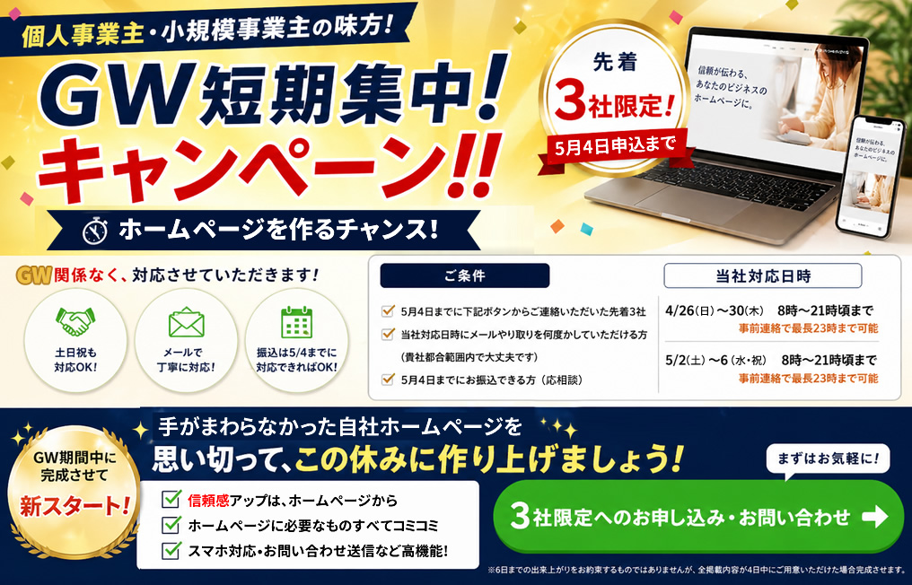 ホームページを作る理由は様々です。名刺代わりの会社概要が必要であったり、営業ツールとしての業務紹介がメインであったり、集客やSNSの受け口としてのホームページであったりもします。