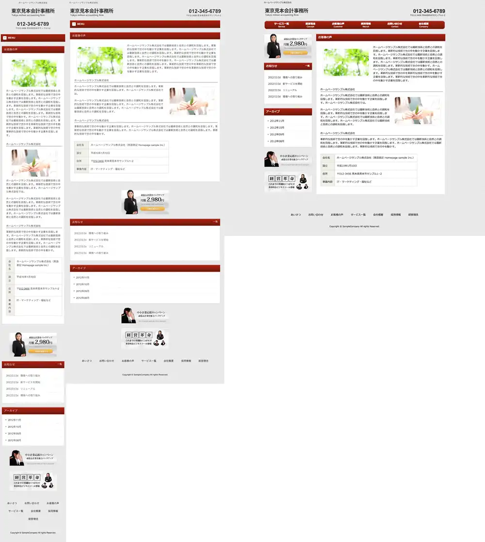 ※一部機種におきましては表示レイアウトがサンプルサイトと異なって表示される場合がございますので予めご了承下さいますようお願い申し上げます。