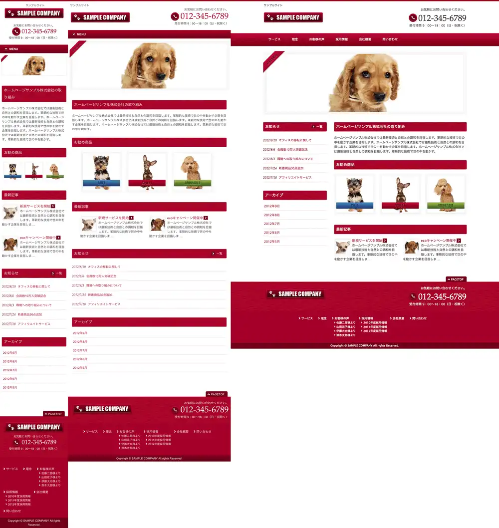 ※一部機種におきましては表示レイアウトがサンプルサイトと異なって表示される場合がございますので予めご了承下さいますようお願い申し上げます。
