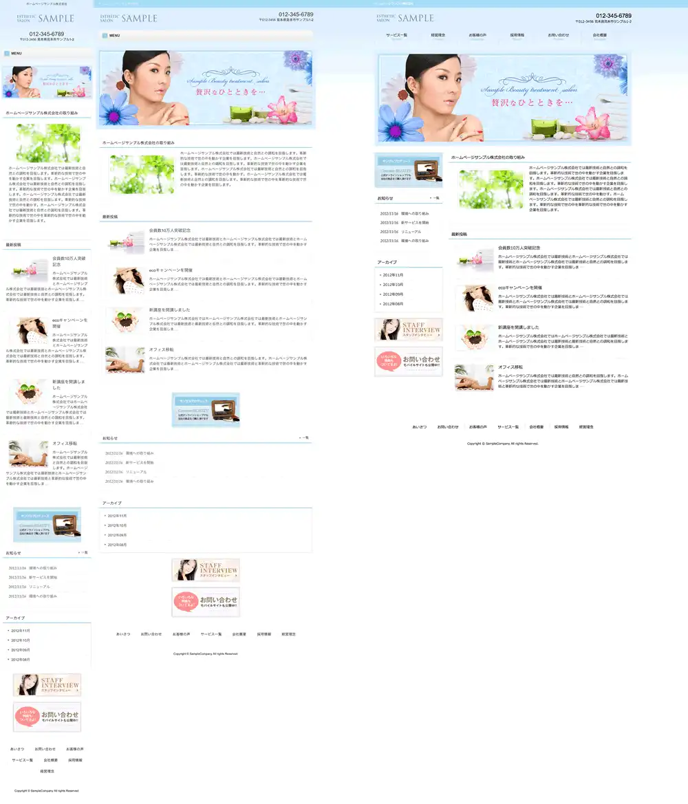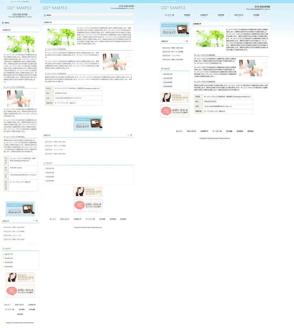 ※一部機種におきましては表示レイアウトがサンプルサイトと異なって表示される場合がございますので予めご了承下さいますようお願い申し上げます。