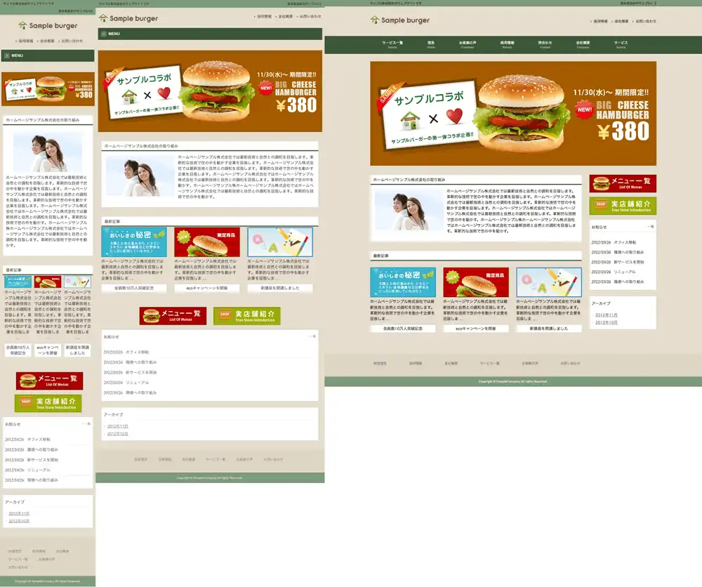 ※一部機種におきましては表示レイアウトがサンプルサイトと異なって表示される場合がございますので予めご了承下さいますようお願い申し上げます。