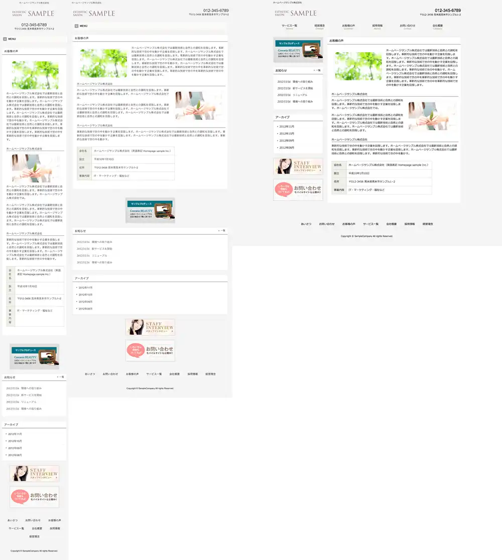 ※一部機種におきましては表示レイアウトがサンプルサイトと異なって表示される場合がございますので予めご了承下さいますようお願い申し上げます。