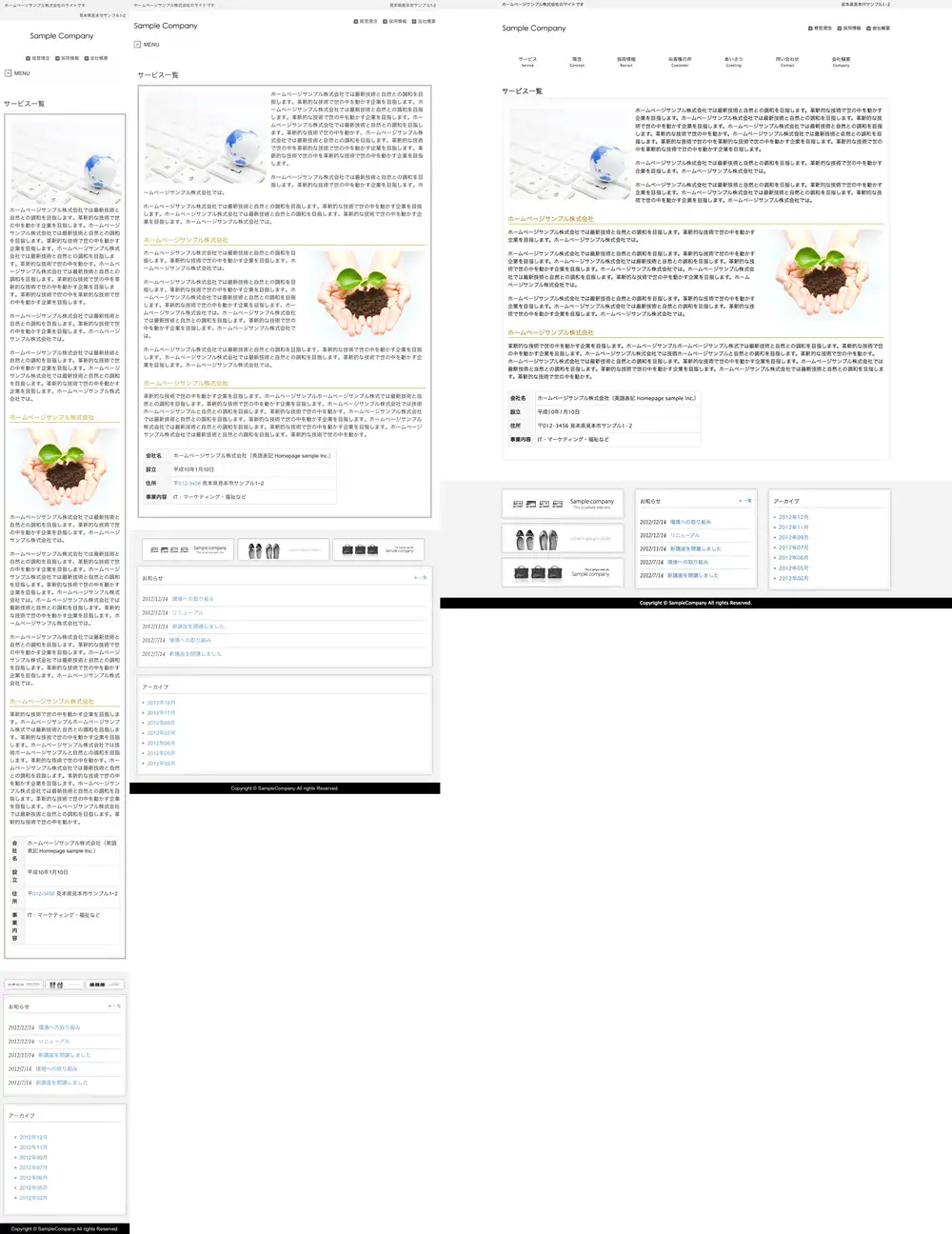 ※一部機種におきましては表示レイアウトがサンプルサイトと異なって表示される場合がございますので予めご了承下さいますようお願い申し上げます。