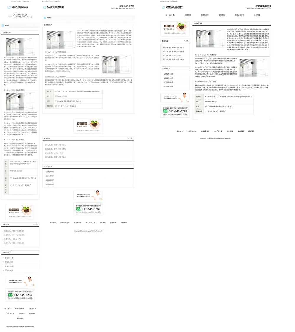 ※一部機種におきましては表示レイアウトがサンプルサイトと異なって表示される場合がございますので予めご了承下さいますようお願い申し上げます。