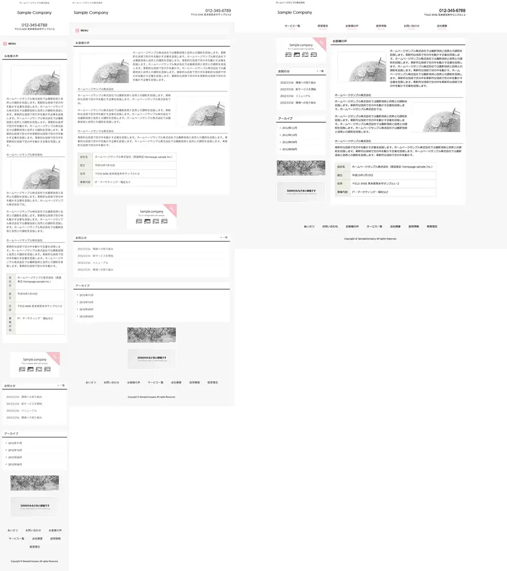 ※一部機種におきましては表示レイアウトがサンプルサイトと異なって表示される場合がございますので予めご了承下さいますようお願い申し上げます。