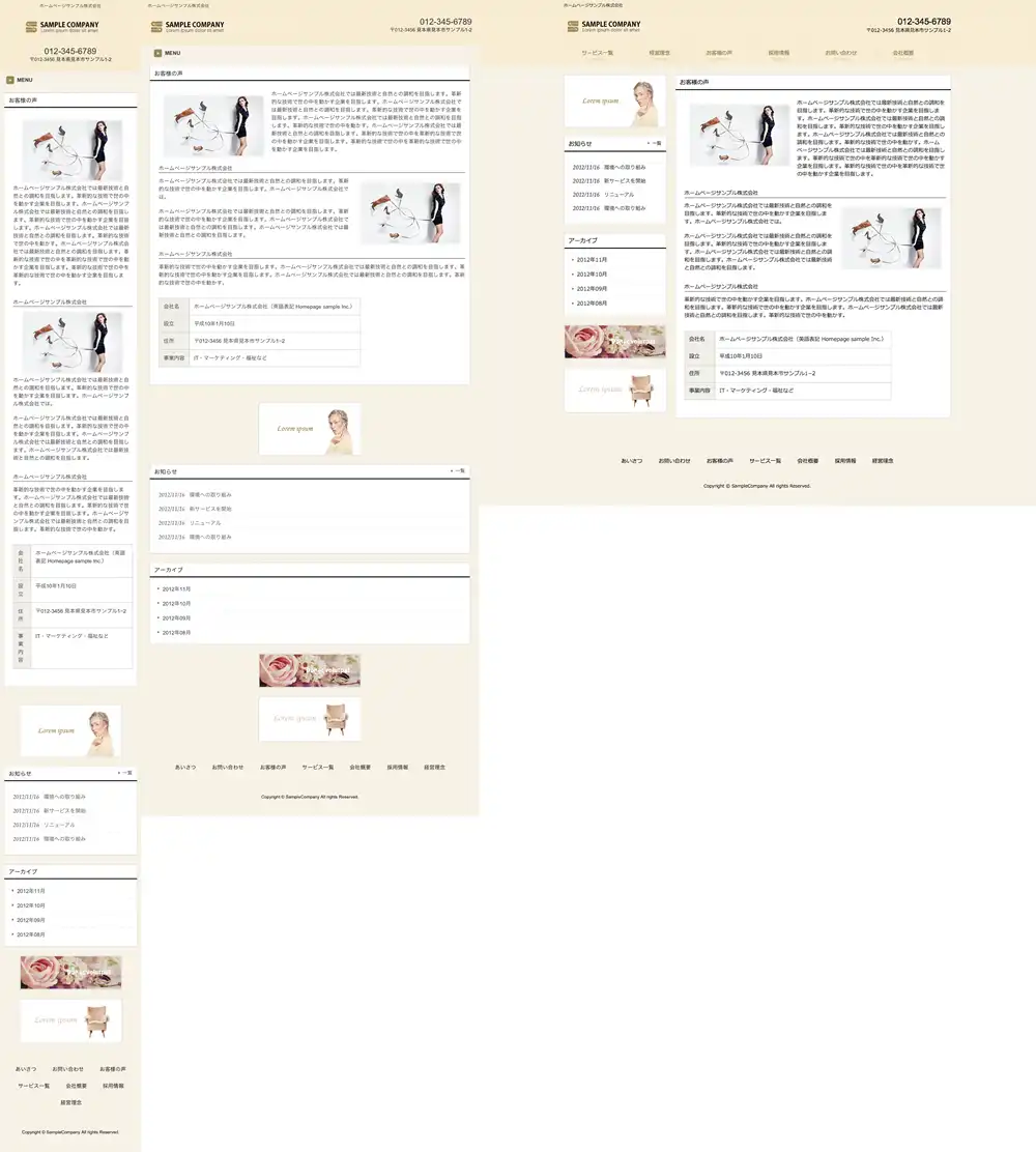 ※一部機種におきましては表示レイアウトがサンプルサイトと異なって表示される場合がございますので予めご了承下さいますようお願い申し上げます。