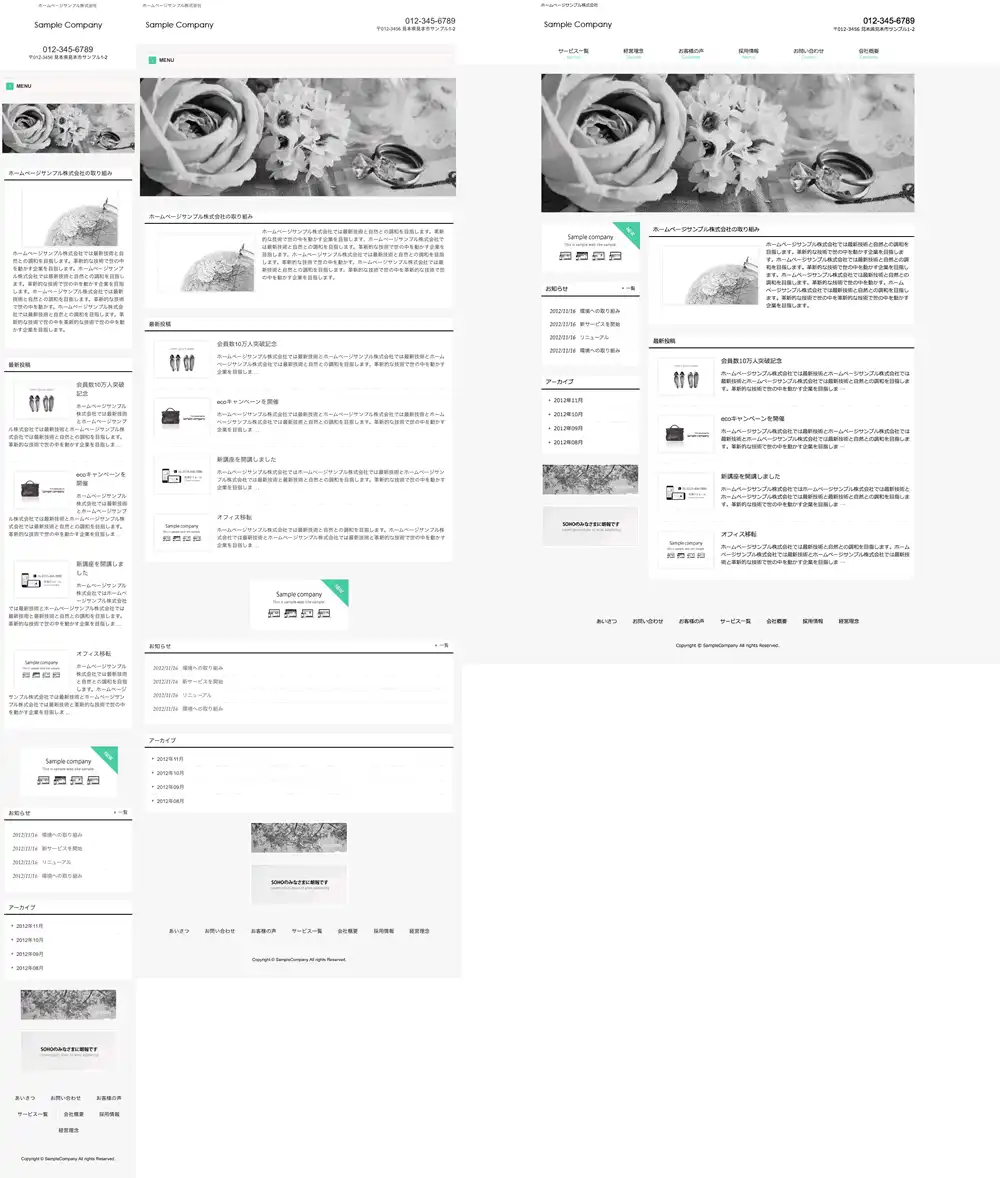 ※一部機種におきましては表示レイアウトがサンプルサイトと異なって表示される場合がございますので予めご了承下さいますようお願い申し上げます。