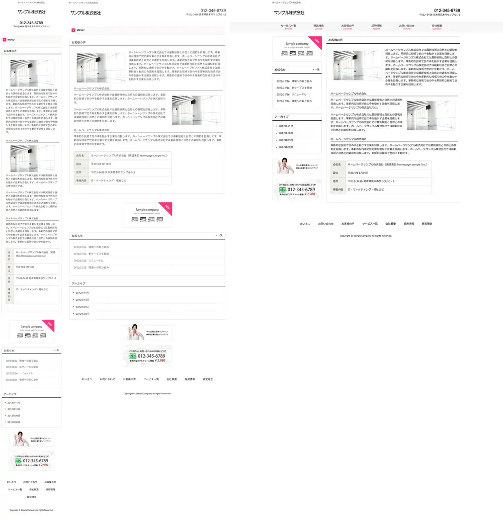 ※一部機種におきましては表示レイアウトがサンプルサイトと異なって表示される場合がございますので予めご了承下さいますようお願い申し上げます。