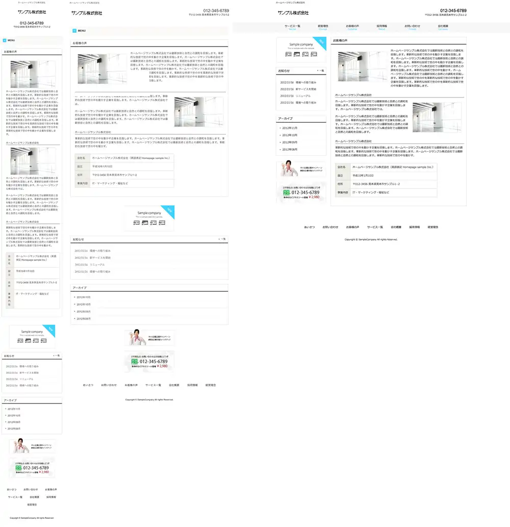※一部機種におきましては表示レイアウトがサンプルサイトと異なって表示される場合がございますので予めご了承下さいますようお願い申し上げます。