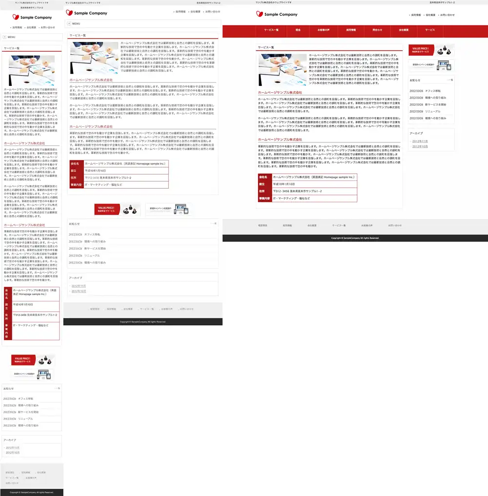 ※一部機種におきましては表示レイアウトがサンプルサイトと異なって表示される場合がございますので予めご了承下さいますようお願い申し上げます。