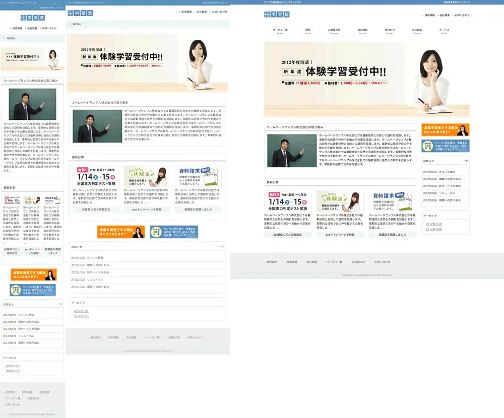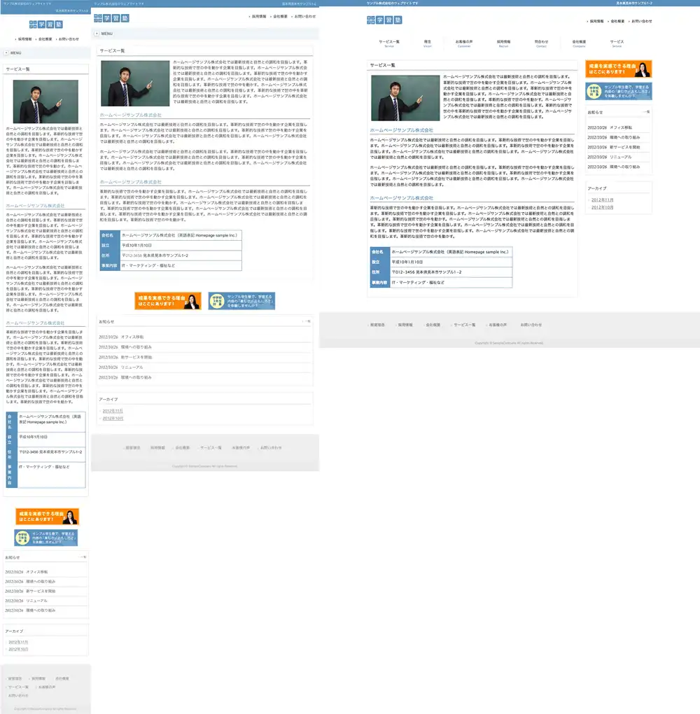 ※一部機種におきましては表示レイアウトがサンプルサイトと異なって表示される場合がございますので予めご了承下さいますようお願い申し上げます。