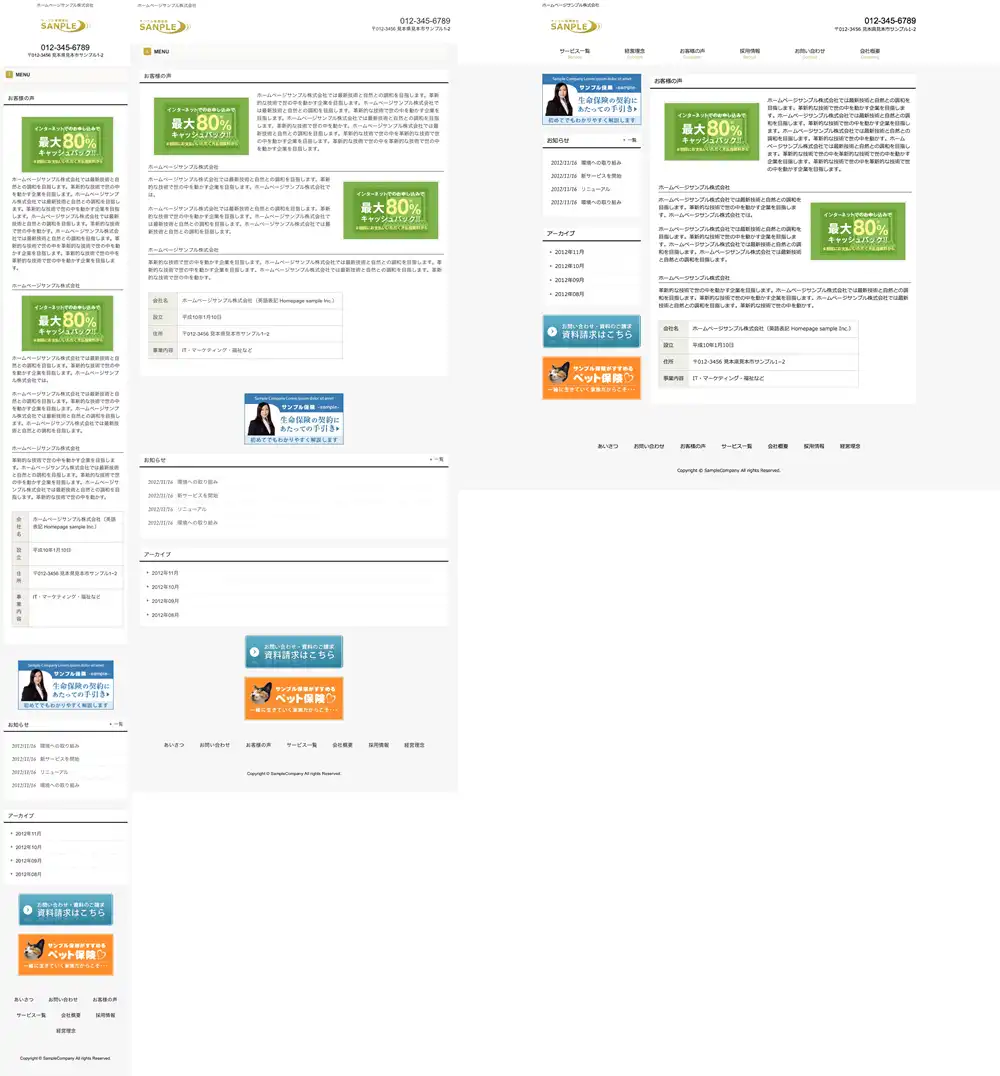 ※一部機種におきましては表示レイアウトがサンプルサイトと異なって表示される場合がございますので予めご了承下さいますようお願い申し上げます。