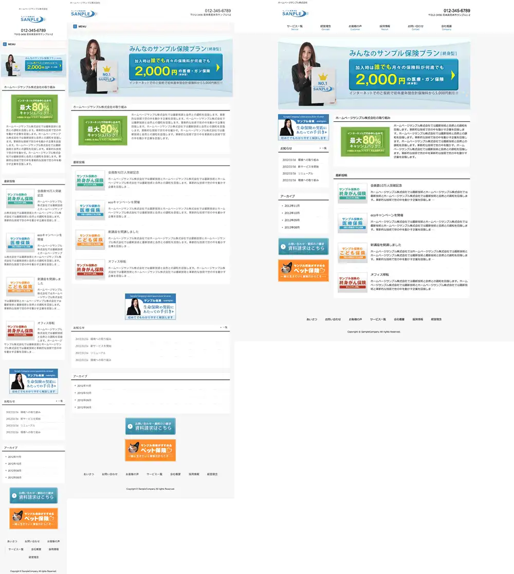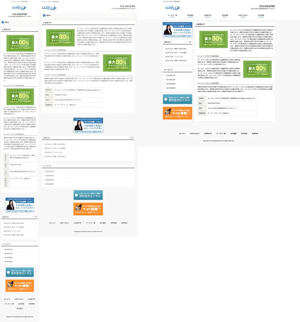 ※一部機種におきましては表示レイアウトがサンプルサイトと異なって表示される場合がございますので予めご了承下さいますようお願い申し上げます。