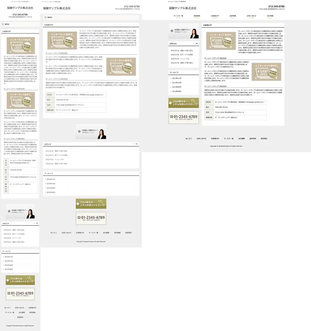 ※一部機種におきましては表示レイアウトがサンプルサイトと異なって表示される場合がございますので予めご了承下さいますようお願い申し上げます。