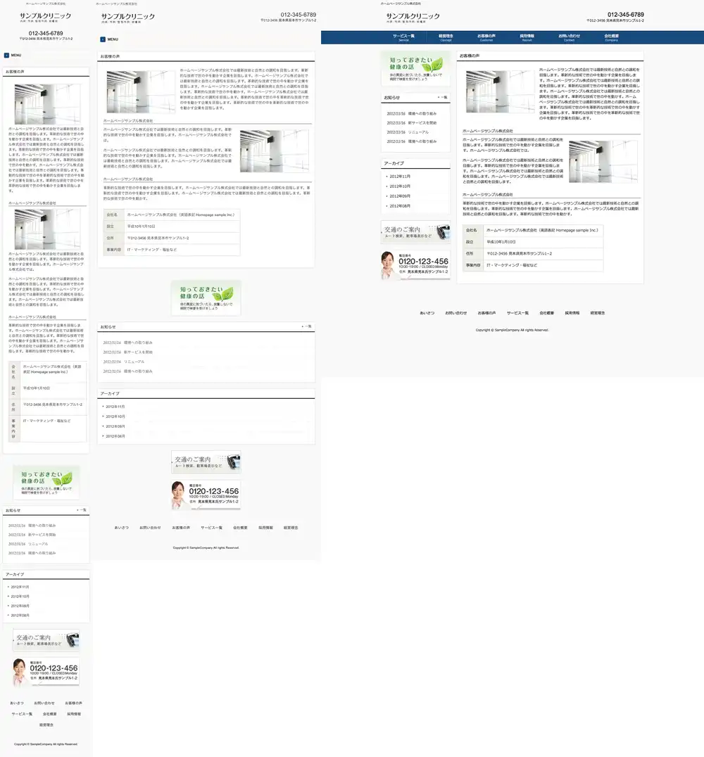 ※一部機種におきましては表示レイアウトがサンプルサイトと異なって表示される場合がございますので予めご了承下さいますようお願い申し上げます。