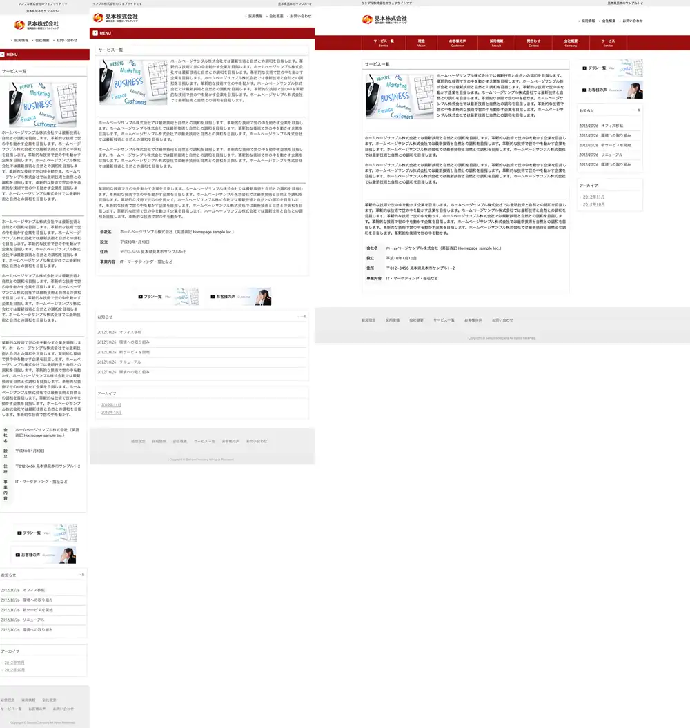 ※一部機種におきましては表示レイアウトがサンプルサイトと異なって表示される場合がございますので予めご了承下さいますようお願い申し上げます。