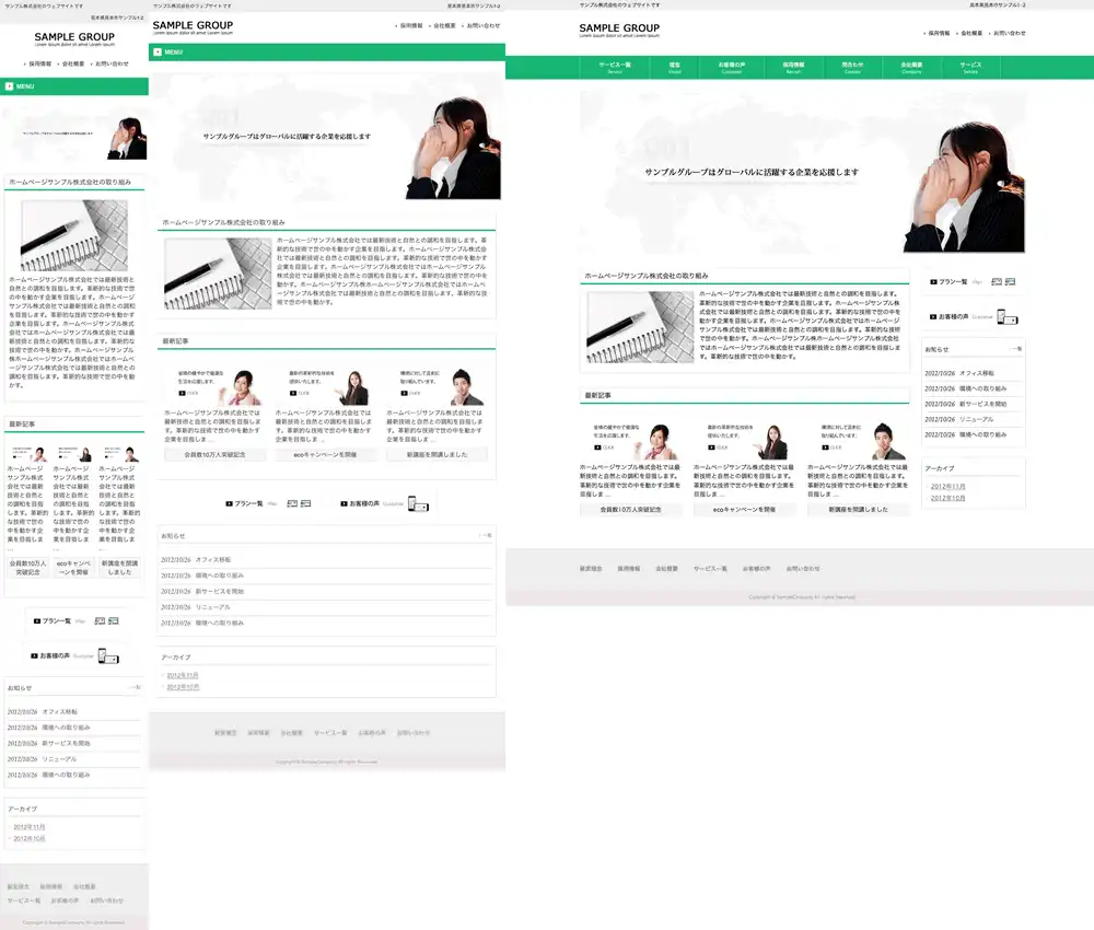 ※一部機種におきましては表示レイアウトがサンプルサイトと異なって表示される場合がございますので予めご了承下さいますようお願い申し上げます。