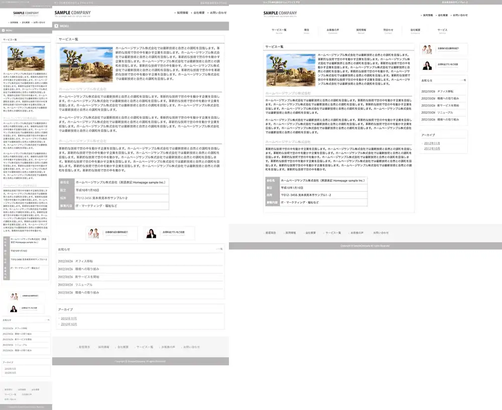 ※一部機種におきましては表示レイアウトがサンプルサイトと異なって表示される場合がございますので予めご了承下さいますようお願い申し上げます。