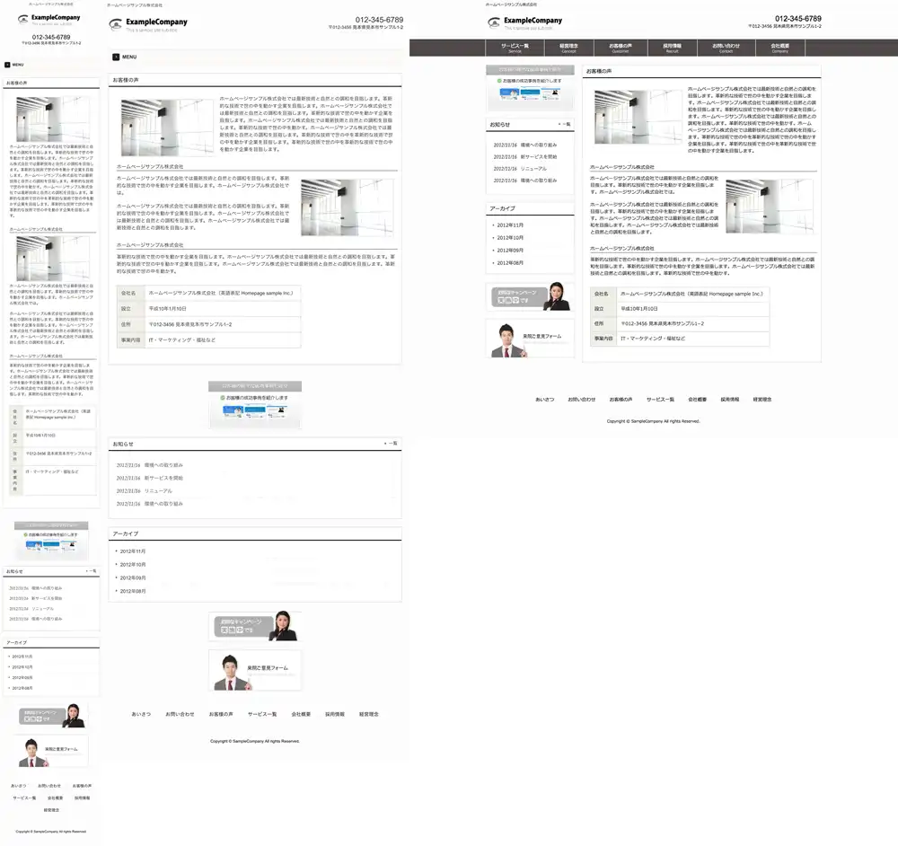※一部機種におきましては表示レイアウトがサンプルサイトと異なって表示される場合がございますので予めご了承下さいますようお願い申し上げます。