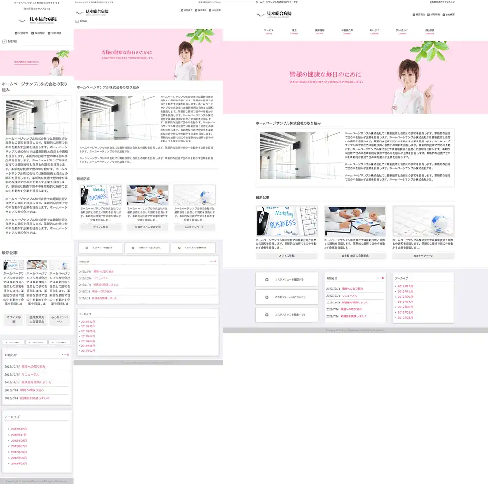 ※一部機種におきましては表示レイアウトがサンプルサイトと異なって表示される場合がございますので予めご了承下さいますようお願い申し上げます。