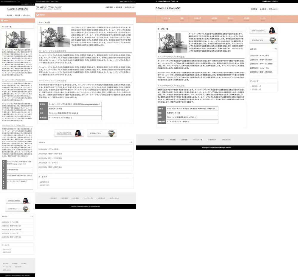 ※一部機種におきましては表示レイアウトがサンプルサイトと異なって表示される場合がございますので予めご了承下さいますようお願い申し上げます。