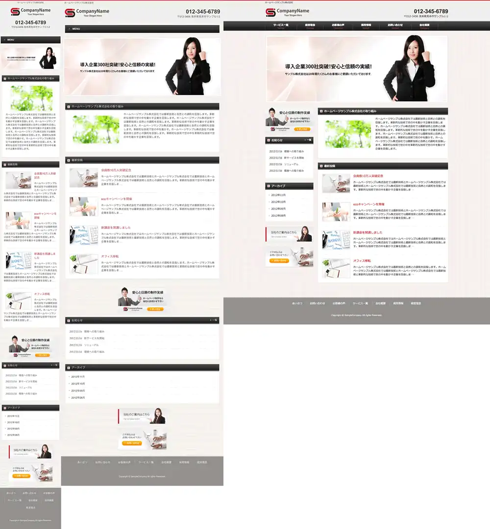 ※一部機種におきましては表示レイアウトがサンプルサイトと異なって表示される場合がございますので予めご了承下さいますようお願い申し上げます。