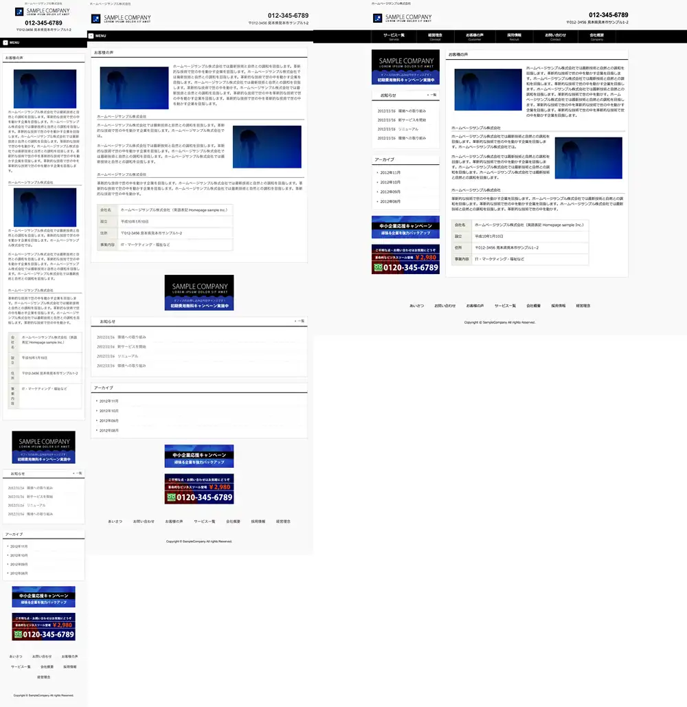 ※一部機種におきましては表示レイアウトがサンプルサイトと異なって表示される場合がございますので予めご了承下さいますようお願い申し上げます。