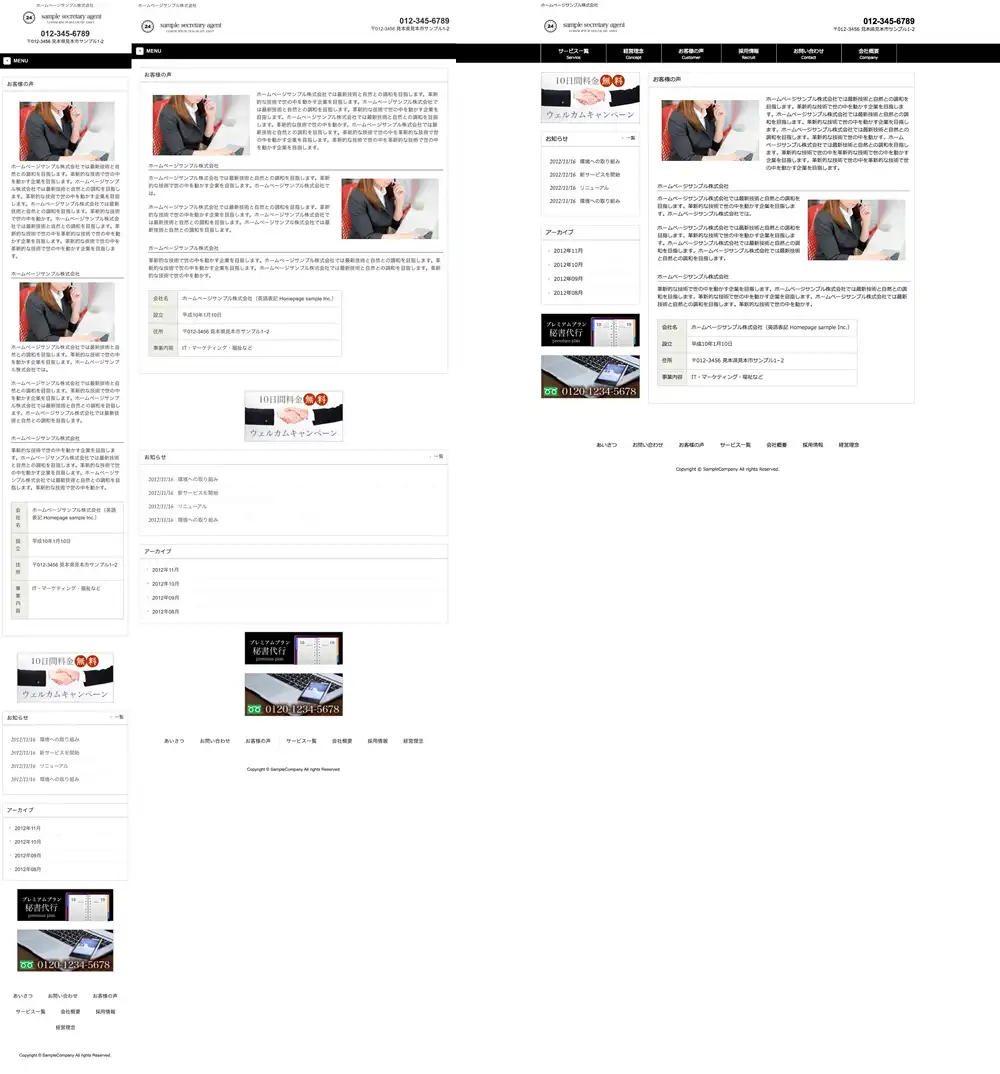 ※一部機種におきましては表示レイアウトがサンプルサイトと異なって表示される場合がございますので予めご了承下さいますようお願い申し上げます。
