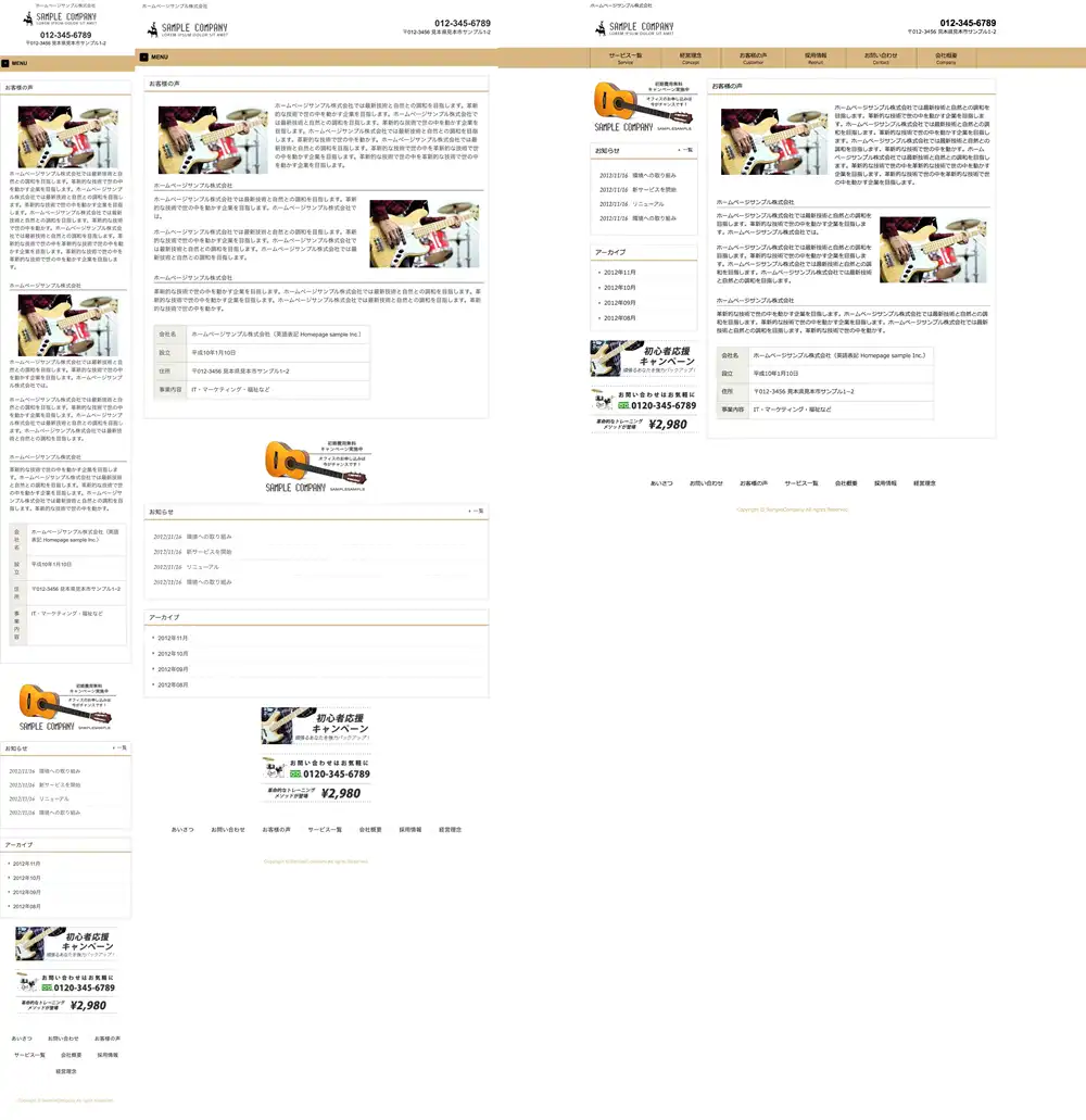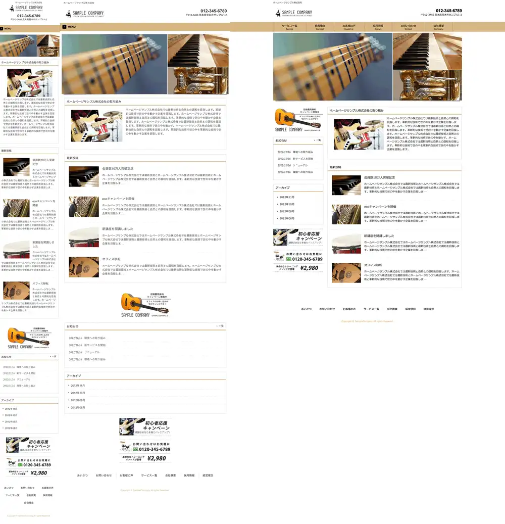 音楽、楽器屋、音楽スタジオ、ミュージシャンなどのイメージに最適なホームページデザインです。