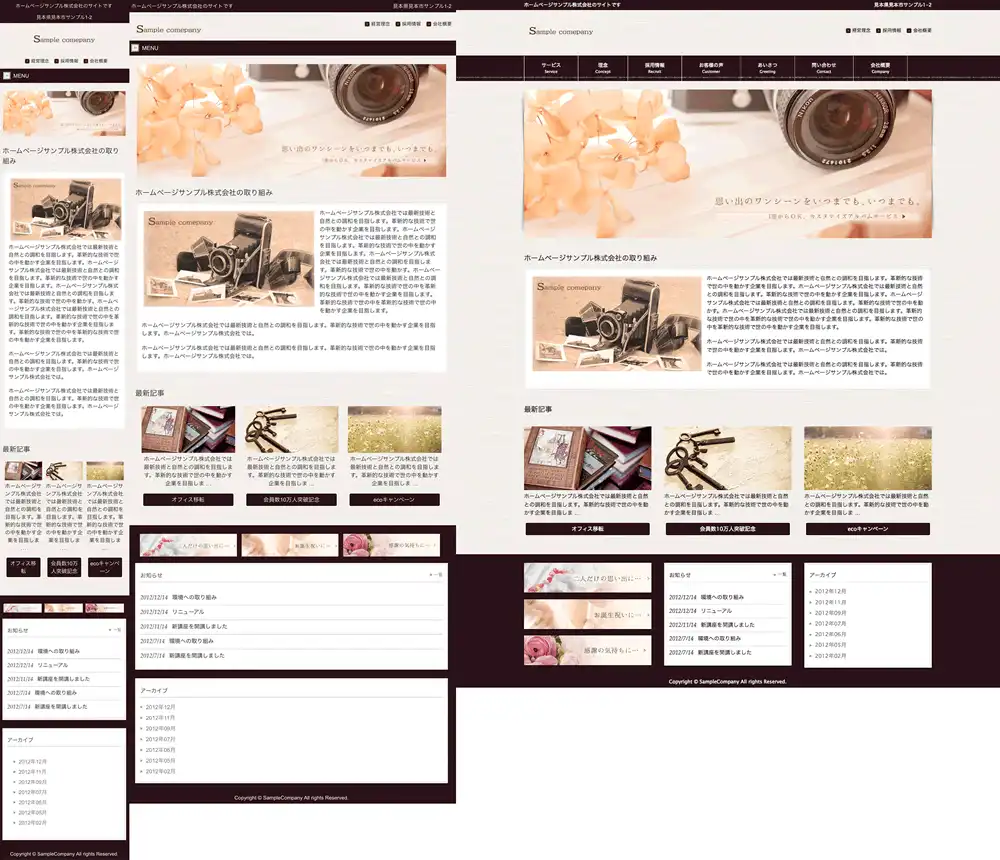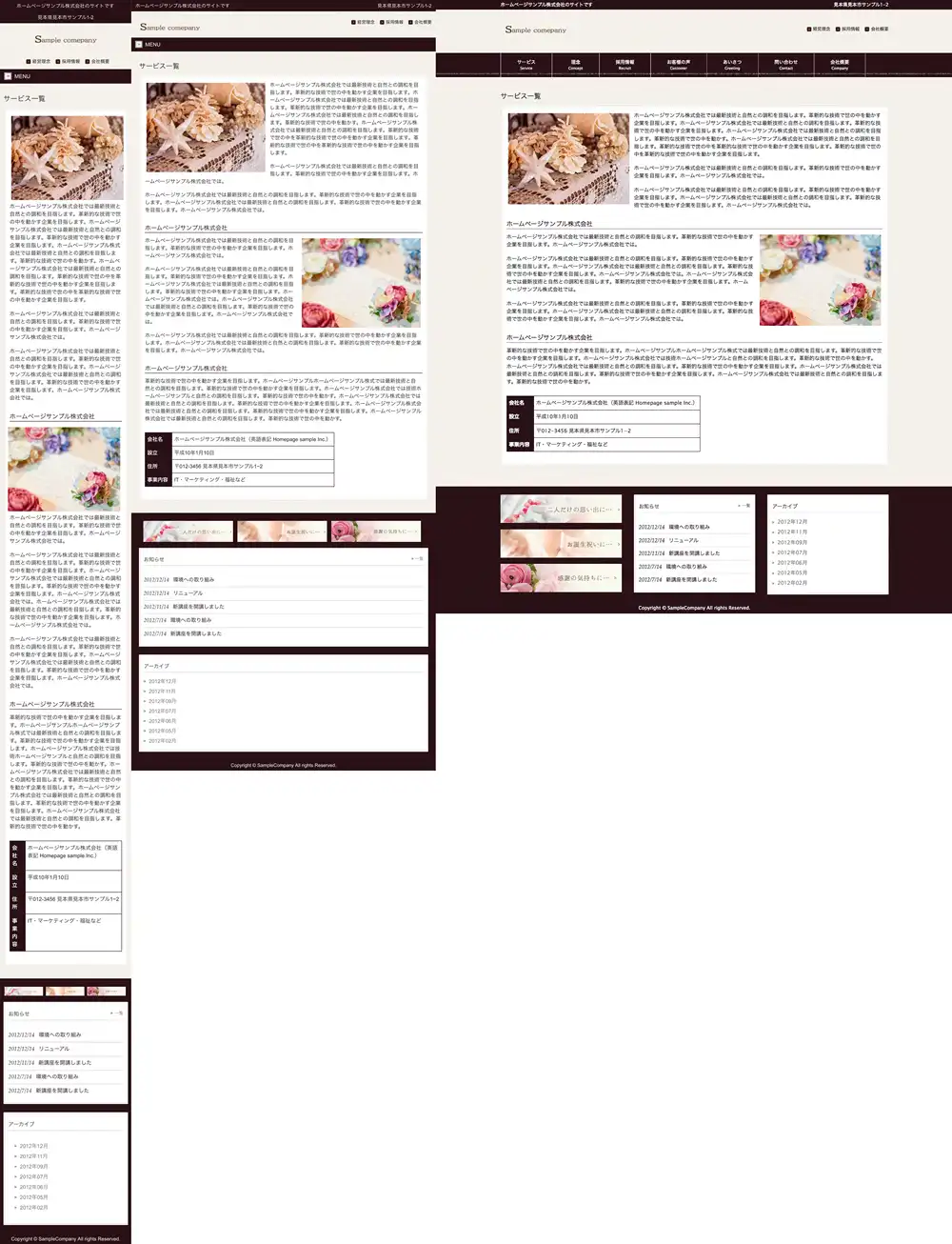 ※一部機種におきましては表示レイアウトがサンプルサイトと異なって表示される場合がございますので予めご了承下さいますようお願い申し上げます。