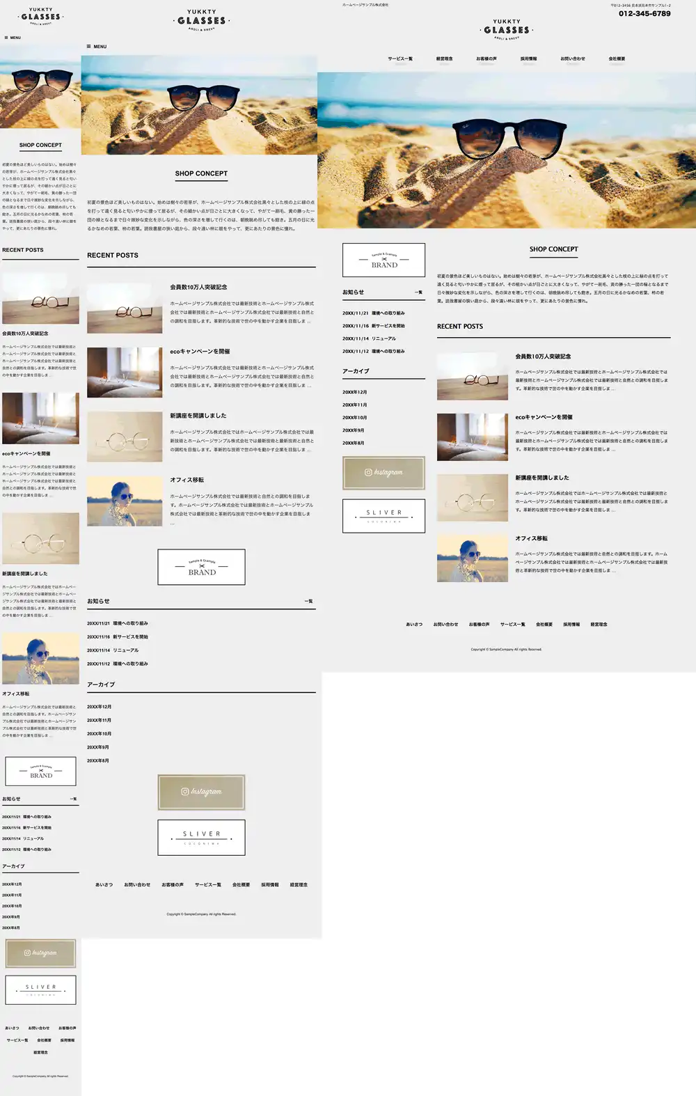 企業サイト、飲食店、カフェ、ショップ、雑貨屋、アパレルショップなどのイメージに最適なホームページデザインです。