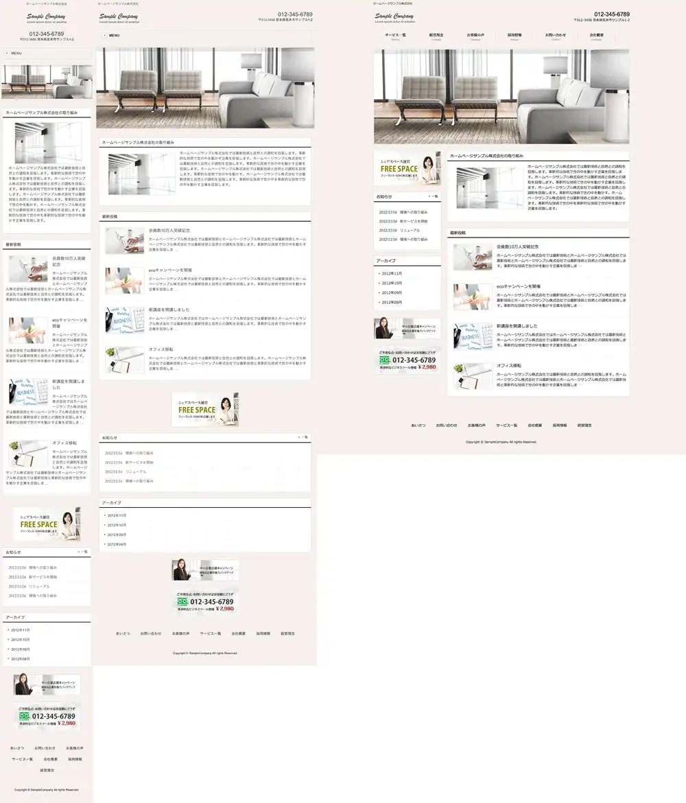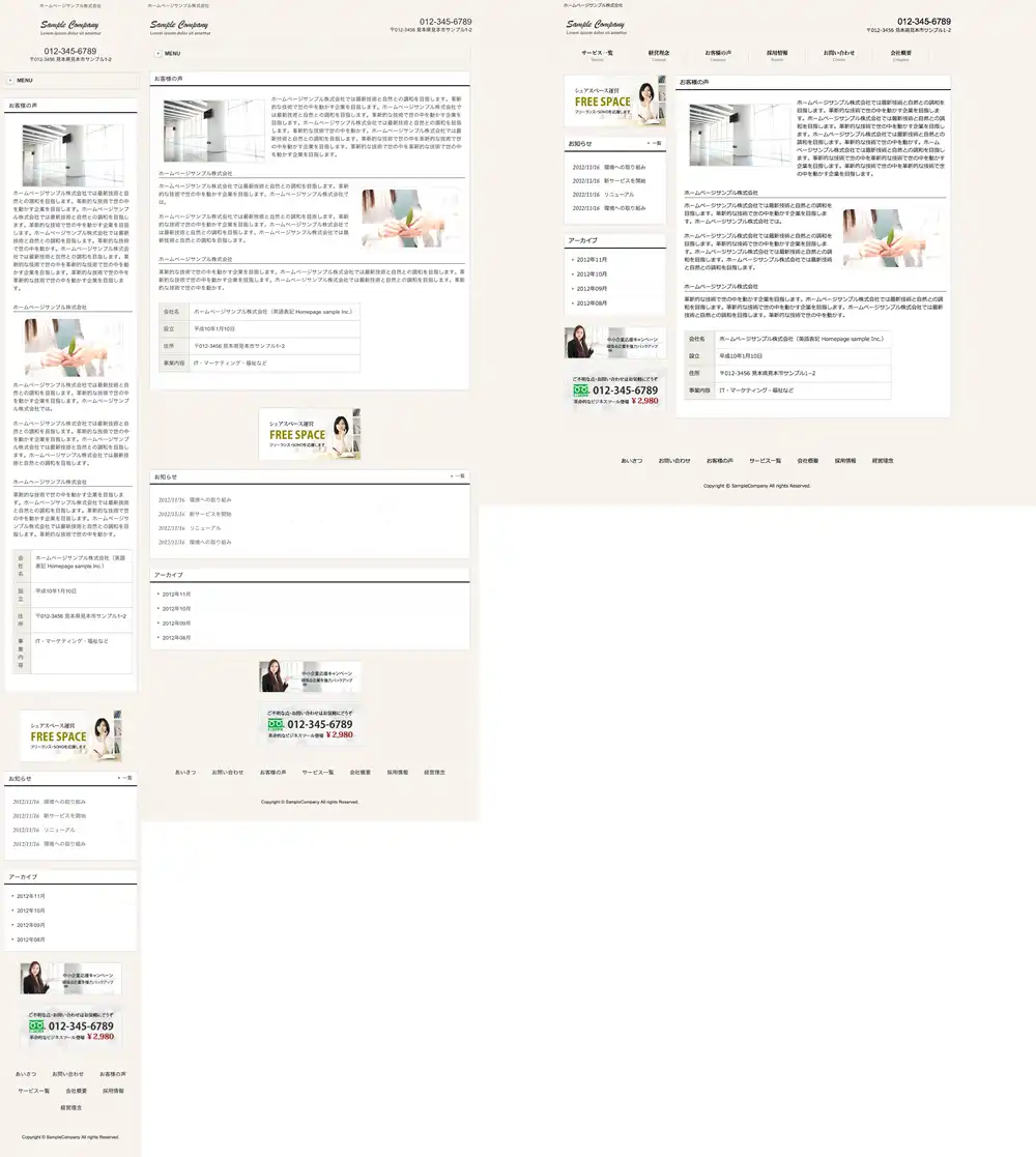 ※一部機種におきましては表示レイアウトがサンプルサイトと異なって表示される場合がございますので予めご了承下さいますようお願い申し上げます。