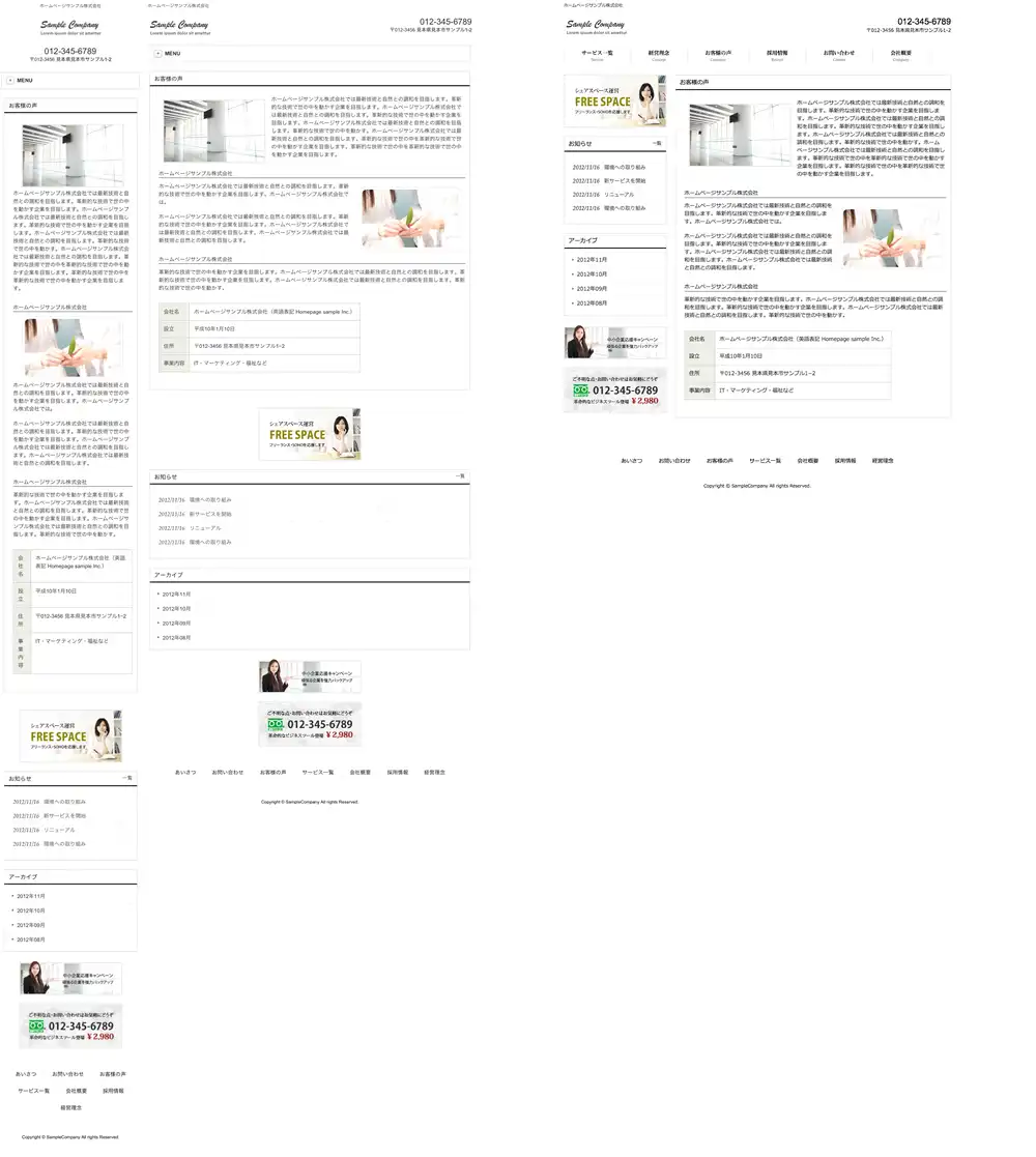 ※一部機種におきましては表示レイアウトがサンプルサイトと異なって表示される場合がございますので予めご了承下さいますようお願い申し上げます。